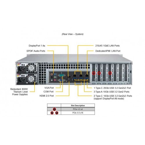 - Двойной блок питания 800W: Обеспечивает стабильную и надежную работу сервера, а также позволяет легко масштабировать мощность в будущем.