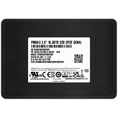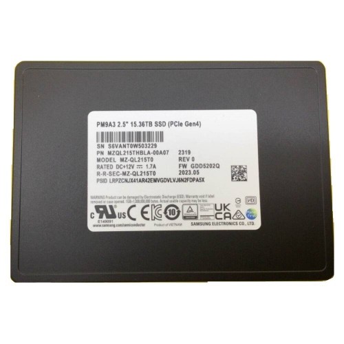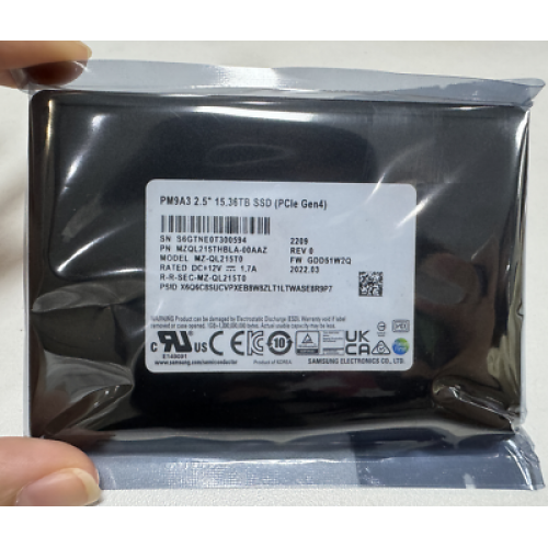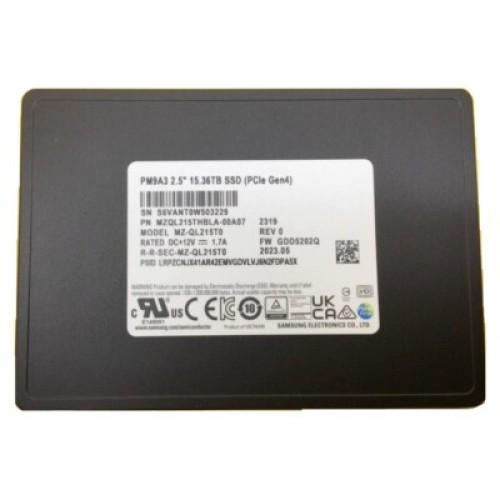 Накопитель SSD Samsung Enterprise 15.36TB 2.5" PM9A3, U.2, NVMe PCIe 3.1 x4, 3D NAND, TLC 6800/4000MB/s IOPS 1000K/180K, 1DWPD (MZQL215THBLA-00A07 / MZ-QL215T0)