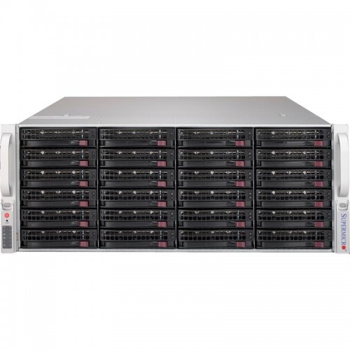 SSG-6049P-E1CR24H оснащена контроллером 3108RAID для управления массивом из 24 жестких дисков форм-фактора LFF. Для быстрой передачи данных предусмотрены два порта 10Gbe. Платформа имеет 5 слотов для установки дополнительных расширенных карт и два блока питания мощностью 1200 Вт.