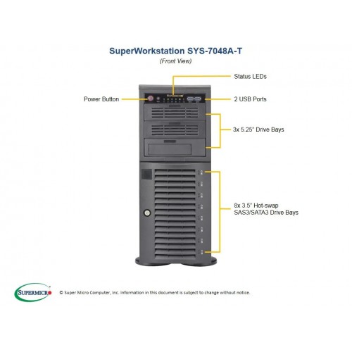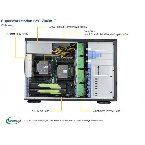 Серверная платформа Supermicro SYS-7048A-T 4U/Tower 2xLGA2011 C612/16xDDR4/8x3.5 SATA/2xGlan/no VGA/Audio 1200W